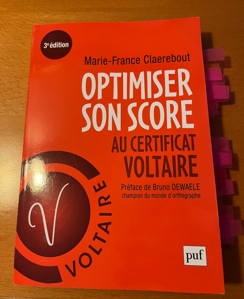 J’ai commencé par m’inscrire sur le site du Projet Voltaire et par faire, en boucle, tous les exercices des modules Supérieur (10 niveaux) et Excellence (14 niveaux). Chaque niveau te présente peut-être une quinzaine ou une vingtaine de règles ou de difficultés, certaines basiques (différence entre « a » et « à »), d’autres beaucoup plus pointues (je reprendrai l’exemple des verbes pronominaux, parce que c’est ce qui m’a posé le plus de problèmes). Et quand j’ai réussi à avoir tout juste plusieurs fois de suite (les mêmes questions reviennent, il y a donc une part de par cœur), j’ai potassé le livre inclus avec la formation, en me mettant des petits rappels là où il faudrait que je retourne tôt ou tard. Puis j’ai acheté un autre bouquin ne contenant que des annales, que j’ai toutes faites en me mettant en conditions réelles (donc en temps limité, sans pause, et évidemment sans aide extérieure). J’ai un peu pris peur après ma première tentative (28 fautes, ce qui m’a décidé à passer sur papier et non sur écran ; c’était un passage obligé pour comprendre ce qu’on attendait de moi au juste, et comment le test se présentait, mais je faisais quand même pas trop le fier) ; dès la deuxième tentative, je suis tombé à 8 ; à la fin (après une vingtaine d’examens blancs différents), je tournais entre 0 et 5 fautes, et enrageais de découvrir encore de nouvelles règles que je n’avais pas travaillées. Finalement, la veille de l’examen, j’ai découvert un autre ouvrage présentant une liste de règles un peu plus exhaustive, mais il était trop tard pour l’acheter. Je n’avais guère le choix sur les dates d’examen si je voulais le passer pas trop loin de chez moi : c’était le faire tout de suite, ou attendre trois mois de plus, et je n’étais pas certain d’avoir le souffle nécessaire, car je me suis imposé un rythme d’apprentissage/révisions très élevé. Je commence à me connaître, et si je ne bats pas le fer tant qu’il est chaud et laisse la motivation retomber, j’ai tendance à me relâcher plus que de raison. Avec 15 jours de plus, j’aurais peut-être visé le 1000/1000 (c’était quand même mon objectif secret, mais je n’y croyais guère), je pense qu’il m’a manqué ça pour être complètement au point. Tant pis, ça me laisse une marge de progression pour la prochaine fois !